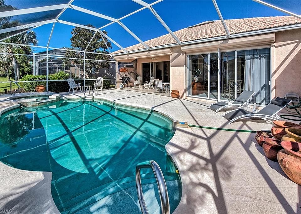 Perfectly situated Southern exposure 3BR/3BA+ Den single family Pool/Spa home in the highly sought after gated community of Glen Eden. This home offers a wonderful open floor plan, split bedrooms, a large den and three bathrooms. Tile throughout the main areas and carpet in the bedrooms. Relax on your screened in lanai by your private Pool/Spa, while enjoying the tranquil lake view with a fountain. This gated community is conveniently located just off Vanderbilt Drive, West of US 41. Bike to the beach, only minutes from Mercato, shopping, dining, or the movie theater.