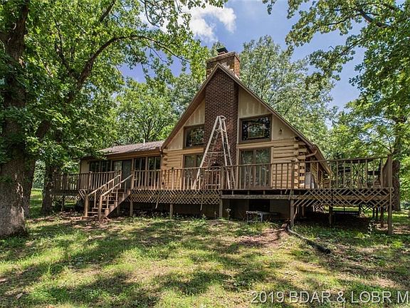 Truman Lake View 3 bedroom log home on 2.9 acres. Guest house, 40x60 Metal Building workshop & carport. On level lot with mature trees in nice area. Close to town and Marinas. Hard to find property!