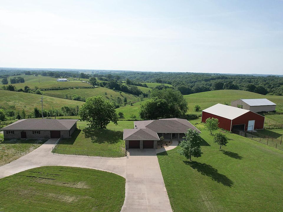 Are you ready to escape the city life or upgrade your hobby farm? Are you in the market for a family sized 4000 sf home on 40 acres m/l? If so, bring your family and your animals because this property is perfect for a small cattle or horse operation. This all brick 4106 sf walkout basement home has sturdy 6'' exterior walls, 4 bedrooms, plus 1 non-conforming bedroom and 2.5 baths. The upstairs has been remodeled while the downstairs is newly finished. There are 2 living areas, a large covered back deck and a covered front porch.Additional amenities include solid hickory wood floors upstairs with stained concrete downstairs, all granite, Anderson aluminum clad casement windows, pantry, downstairs kitchen/bar, new cabinets with soft close doors and drawers, large laundry room, new fixtures and doors, chain link fenced in yard with doggie door and a 2-car oversized garage with a circle drive to round things out.The all brick, 1980 sf He/She Shop/Shed matches the house and also has 6'' exterior walls, concrete, water and electricity. His side has a large garage or workshop, is insulated and is wired for 240v electricity. Her side has 2 roomy stalls, tack room and a hen house with a large covered outdoor run.The property includes 39.96 surveyed acres with a pond, 2 large barns and views for miles. There is a 48'x72' hay storage barn and a 60'x60' main barn (red) both with concrete, water and electricity. This property is fenced and cross fenced and has over 1500' of sturdy 5 & 6 rail pipe fencing which makes it horse and cattle tight. Close to Hwy 160, Nixa, Springfield, Branson.More acreage available.