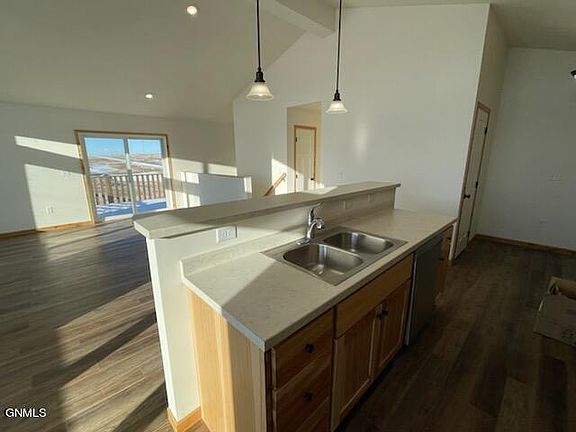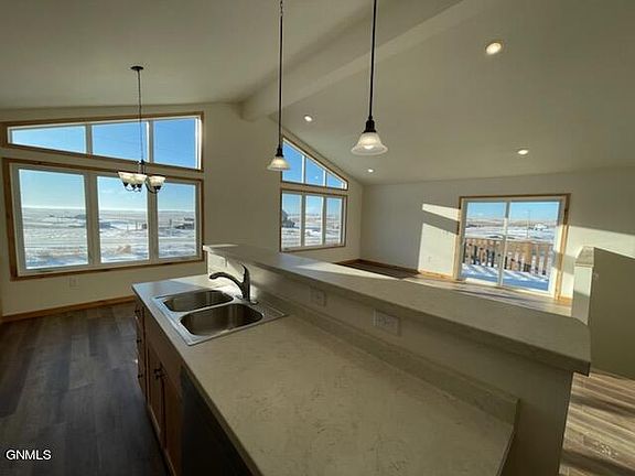 OPEN HOUSE 2-9-23 5:30-7pm. Enjoy beautiful sunsets on your own 3 acres in the rolling hills west of Williston. Horses welcome. Extra high vaulted ceiling in main area with second level of windows to the south makes for a cozy warm open LR, DR, kitchen area. 2-level island for entertaining and pantry cupboard next to buffet area. Primary BR suite with large closet and low entry tiled shower. LVT flooring throughout with carpet in BRs. Full walk out unfinished basement. https://my.matterport.com/show/?m=RPZkbnuyRUX
