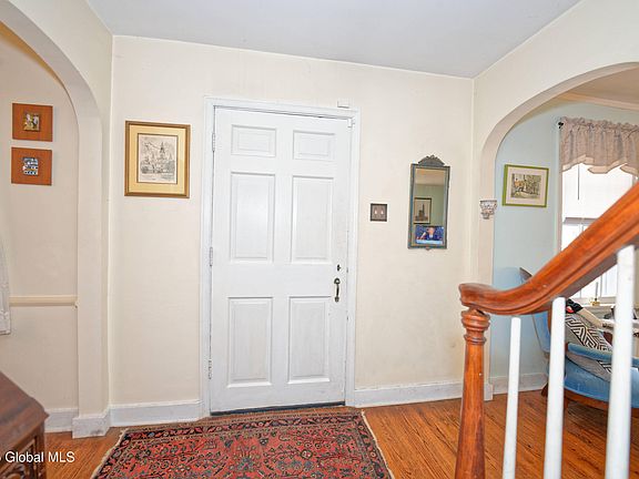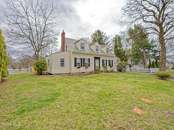 Charming 3 bedroom, 1.5 bath home on a private corner lot in the Niskayuna School District. Add your own touches to this classic Old Niskayuna Cape featuring beautiful eco-friendly bamboo and oak floors throughout. The updated kitchen offers cherry cabinets and Corian counters, while the spacious living room boasts a new gas fireplace insert and an arched entry to the cozy den. Perfect for remote work with a dedicated home office. Enjoy a spacious, carpeted family room in the basement and a recently renovated full bath (2023). Maintenance-free exterior updated 150 amp electric, this home is full of charm and ready for your style!