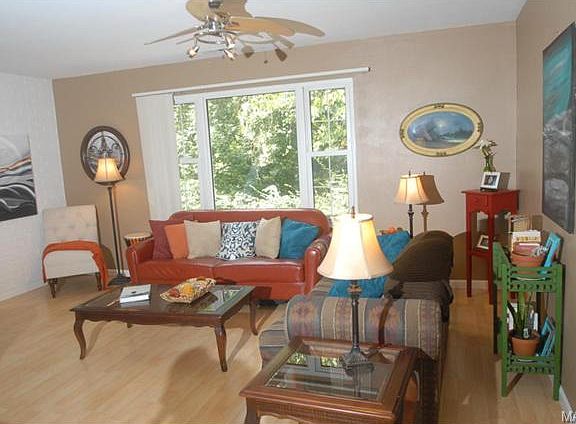 BACK ON MARKET AT NO FAULT OF SELLER! PRICE REDUCED TO APPRAISED VALUE! WOW! If you are looking for convenient condo living in the Rockwood Summit Schools at an incredible price, this is for you! Entry nook on your left as you walk in is perfect for your coats, bags etc... A few of the special features include an updated eat in kitchen w/ a pantry, updated bathrooms & flooring & lighting. You'll love the brick wall & the big picture window in the family room overlooking nothing but trees! Upstairs are 2 spacious bedrooms & updated bath. The walk out, finished lower level has a large 17x16 rec room w/ a wet bar, laundry room/storage. Walk out the newer sliding doors to a private, fenced in patio. Reserved parking spot right outside the front door & plenty of additional guest spaces are available. ALL ELECTRIC UNIT & the low condo fees cover your water, sewer& trash. This place is move-in ready! Convenient location near schools and shopping, restaurants and movie theater in Gravois Bluffs