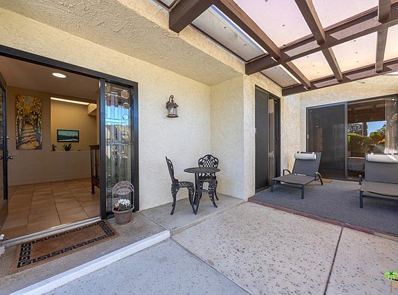 Welcome to convenient condo living at Palm Regency. This spacious 2 bedroom 2 bath end unit in a private location feels like a single family home. Centrally located and convenient to downtown this 2 bedroom 2 bath condo includes a living room with fireplace, den, vaulted ceilings and skylights throughout. There is a master suite with a large walk-in closet and large master bath. This home has been extremely well maintained with plenty of storage throughout. The attached 2 car garage is finished with direct access into the home. Laundry is located inside the unit. The walled and gated courtyard is both private and serene. The appliances, air conditioning, ductwork, roof insulation, water heater, plumbing and much more have been upgraded during the past few years. There are two pools, spa, tennis court and well maintained grounds. Your easy living Palm Springs home is waiting for you!