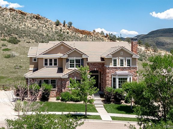 Come see this spectacular home located in one of Golden's premier neighborhoods. With only 30 homes, this community is within easy access of downtown Golden, highway 58 and I-70. The finishes of this 5 bed, 5 bath home are exquisite. Travertine and wood on the main level accent 20 foot ceilings, inlayed floors and views of the surrounding ridges and east facing foothills. Two gas fireplaces on the main level and one on the second. With a view of the breathtaking surroundings from every window, your peace and solitude after a busy day awaits. Stainless steel appliances, Bosch dishwasher and a Blue Star range are the perfect complement to a cook's kitchen. Walnut stained cabinets with basket style pulls provide plenty of storage. Adjacent to the kitchen on one side is the great room with two-story windows to take in the ridge topped open space to the east. One the other side is the butler pantry with wine fridge and dining room access. Down the hall from the great room is a main level guest bedroom with walk-in shower. The second level master suite with a two-sided fireplace, coffee bar, tub, shower and custom his and hers closet has washer and dryer hookups. With three additional guest bedrooms upstairs, privacy and alone time are close by. The unfinished basement is ready for your personal touch. Come and design your own custom walk-out level. With 2,400 square feet and rough in bath, plan a family room, theatre space, extra bedroom or whatever you desire.