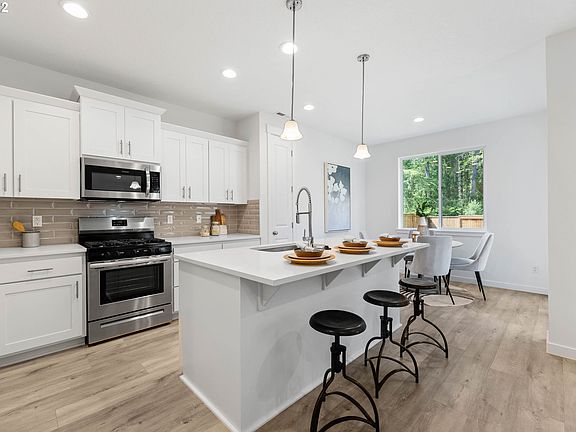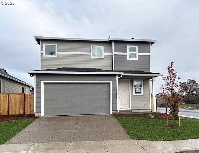 Move In Before Christmas! Contemporary 2 Story Home on Nice corner lot, fully fenced. Spacious kitchens open to living room. Quartz counter tops, Extra Large Island with seating, Gas Stainless steel Appliances, pantry, farmhouse sink and pantry. Large Great room with gas fireplace and separate dining nook. Upper level has laundry room, large primary suite with trey ceiling, private bathroom with two sinks and a huge walk-in closet. Interior Photos are of Model Home.