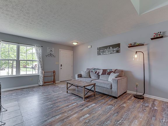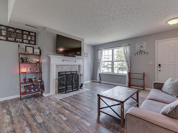 Welcome to this inviting 3 bedroom, 2.5 bath home situated on the edge of a tranquil pond. Step into the bright and airy open-concept living area featuring a cozy wood burning fireplace, perfect for those chilly Indiana winters! The spacious, eat-in kitchen offers a new backsplash and includes all appliances for your convenience. The spacious primary suite offers an ensuite bath, while two additional bedrooms provide ample space for family or guests. Enjoy the loft area, perfect for a home office, playroom, or cozy den. Step outside to enjoy your fenced in backyard, ideal for pets and gatherings, with stunning pond views that enhance the tranquil setting. A versatile shed offers additional storage or workspace options. Updates include new front door and storm door, back sliding glass door and a new water heater just last year. HVAC is 3/4 years old and the roof is just 4 yrs old! Close to the interstate, shopping, restaurants and schools! With its perfect blend of comfort, style, and functionality, this home is a delightful retreat waiting for you. Military relocation is prompting the quick sale, offering you a chance to make this home all yours!
