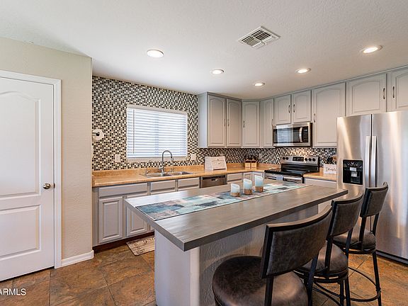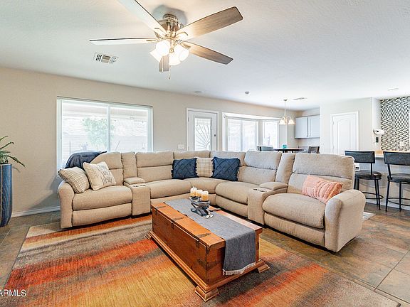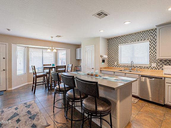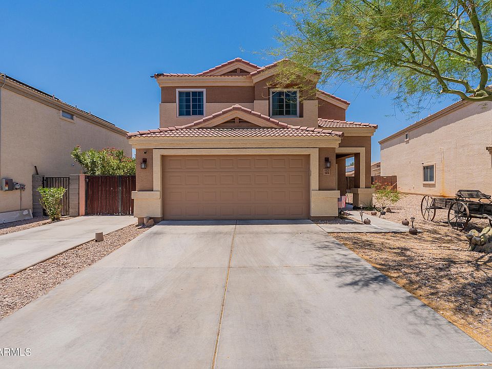Say hello to this wonderful 2-story 4 bed/2.5 bath home in the Buckeye community of Sundance! Take advantage of the OWNED SOLAR keeping your electric bills very low! RV gate for extra side storage with a new concrete pad for additional parking! Great floorplan featuring a spacious open kitchen/living space. Kitchen cabinets just refinished in 2024, newer stainless steel appliances (2021), nice sized kitchen island with extra seating and plenty of storage! Half bath and extra room for an office/guest/playroom downstairs. Upstairs boasts 4 additional bedrooms, generously sized loft space, additional full bathroom and laundry room! You'll enjoy the very large master suite with vaulted ceilings, large walk-in closet and tub/shower combo. Enjoy the backyard with a nice sized covered patio, grass area and separate space designated for additional seating/entertaining/spa. Recent updates include 6 new windows in 2021, bird netting added around solar system (2021), driveway to RV gate added, new blinds in 2021 and kitchen cabinets refinished in 2024. Don't miss your opportunity to check out this great home today!