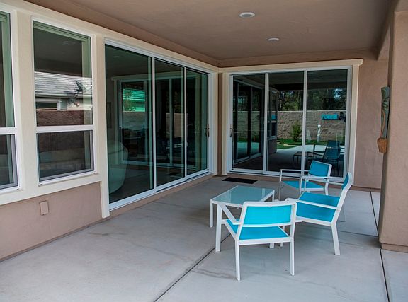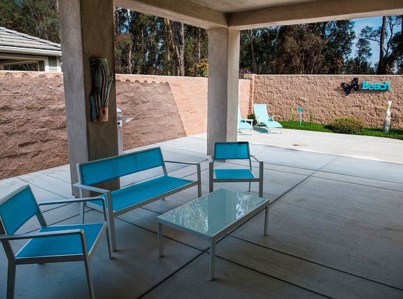 Enjoy modern coastal living in this private, highly upgraded Monterey 2 floorplan home. In this almost new home you will be able to appreciate the indoor/outdoor living with 2 rolling walls leading onto a large covered patio & additional patio areas to lounge in the sun. Relax in the low-maintenance yard that features artificial turf & drip irrigation. Beautifully landscaped drought-tolerant yard backs up to a wooded greenbelt. The upgraded interior includes stunning hardwood floors, granite slab counters, stainless steel appliances (refrigerator incl.), maple cabinetry, window treatments & remodeled bathrooms. The floorplan offers 2 bedrms & separate den that could be used as a 3rd bedroom, office or formal dining. The kitchen offers a large center island with seating for four and an additional dining nook. The garage includes a tankless water heater, metal cabinet storage & epoxy floor. This home is ready to move in and enjoy life in this wonderful resort community. Lot Description: Wooded Greenbelt and Vineyard Views