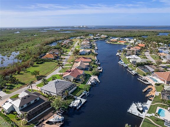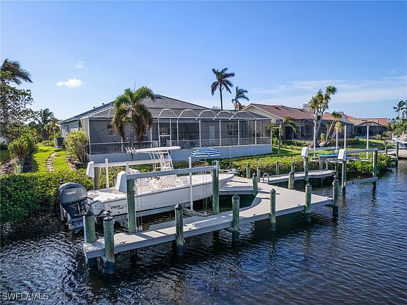 Built high and dry above Ian at 9.7ft above sea level and 45 minutes round trip faster to the Gulf of Mexico by boat! This gulf access 4 bedroom pool home has everything required for living the optimal Florida waterfront lifestyle. Situated in the perfect location within Palm Acres adjacent to Shell Point, this great room concept 2,531sf home overlooks a 165ft wide canal teeming with sea life including manatees, dolphins, snook, and tarpon. The incredibly beautiful mangrove hedge is an annual nesting site for a mating pair of comical green herons! An extensive wrap-around dock with premium PVC deck boards, 13k lb boat life, 7k lb boat lift, and kayak launch provides unprecedented boating and fishing opportunities. In addition to 4 bedrooms this great room home features 3 full baths, study with built in book shelves and cozy fireplace, formal dining room, 12ft volume ceilings, updated kitchen with white quartz countertops, stunning new master bath with free standing soaking tub, plantation shutters, impact rated windows, impact rated doors, and an electric roll down shutter to enclose the outdoor living area. The caged pool has been attractively resurfaced and the pool area decking upgraded to decorative pavers. Brand new tile roof, exceptional garage cabinets, and a spacious attic for storage. Supplementing the sunset water views in the back, the parklike setting in front across the street adds to the tranquil setting. Look closely at the photos, watch the video, and call now to see this property!