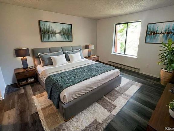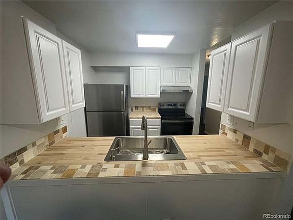 This condo is move-in ready! It is a quiet third floor unit with a wood burning fireplace. This beautiful condo has been freshly painted, and has brand new GE stainless steel kitchen appliances. New kitchen cabinets, butcher block counters, Moen faucets, Kitchen LED lighting. New bathroom vanities, toilets, and lighting. New flooring throughout the whole unit. This condo is one of the few units with 2 large bedrooms, 2 bath, and in-unit laundry closet with stackable washer & dryer. Two closets in the primary bedroom and extended balcony with additional storage room. Each room has its own separate heat temperature control. New LG wall unit AC. The complex has secure access to the building, elevator and pool. Easy commute to I-225, and light rail. There are also plenty of dining and shopping options nearby. No smoking in unit, tenant pays Xcel