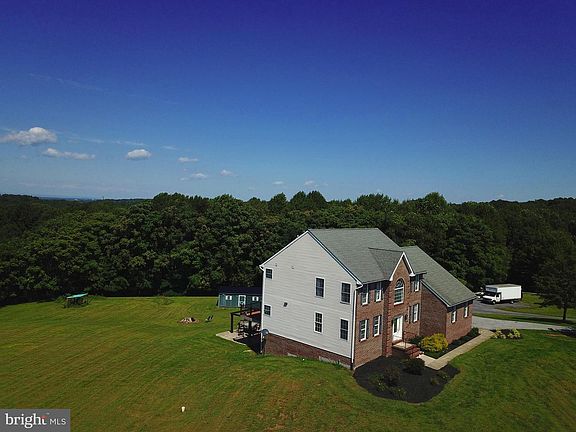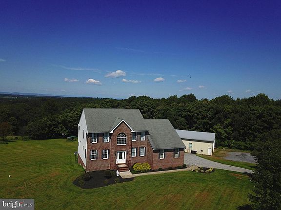 This 1 owner custom built home with amazing views on over 4.5 acres! This custom built Brickfront Colonial offers 4 bedrooms, 3.5 bathrooms and tons of living space. 2 car attached garage, huge 30x40 2 story detached garage large enough for a lift and 4 cars with room to work! Upstairs offers 3 large bedrooms and a huge laundry room. Enjoy the sunset over the mountains from your private deck off the master bedroom. The master bath offer a dual vanity, water closet, a huge soaking tub and separate shower. As you enter into the grand 2 story foyer filled with natural light, there is a home office to the right and light filled living room to the left. As you make your way down the hall you walk in to the kitchen, table space and 1st floor family room. The kitchen offers a new refrigerator, tons of countertop & cabinet space. The back of the home faces West is has a wall of windows letting in all the natural light. Walking out of the sliding glass door to the enormous deck overlooking the property, perfect for enjoying and entertaining. Down in the basement there is another full bathroom & bedroom. The rec room is so big you can have a game area and a tv area. There is also a work shop in the basement. Enjoy the concrete patio as you walk out of the rec room, a great way to access the firepit on these cool fall evenings. Are you into cars and toys? The 30x40 detached garage will not disappoint!