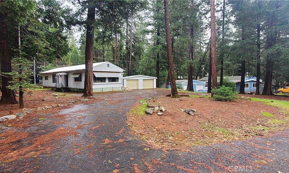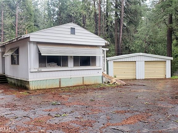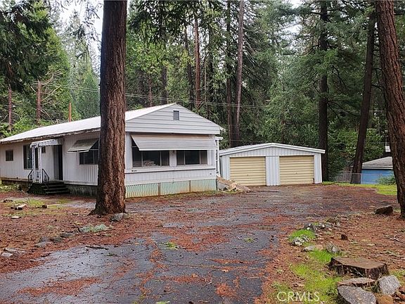 Charming 1968 manufactured home is a perfect match for a handy homeowner. Bring your toolbelt and your imagination. This home is livable and with a little TLC could be restored to it's former glory. This 2-bedroom, 2 bath home with an additional den; rests on a generous 1/3 acre, offering both comfort and space. As you step inside the 1080 square feet of living space, you'll be greeted by a spacious and inviting living room/dining room area adorned with built-in cabinets and drawers, perfect for both storage and display. The family room boasts a cozy wood-burning stove, creating a warm and welcoming atmosphere for gatherings or quiet evenings. The front bathroom serves as a convenient pass-through, connecting seamlessly to both the front bedroom and the living room, ensuring accessibility for both residents and guests. The galley kitchen could use some updating, but does feature a dishwasher, refrigerator and newer electric stove/oven —all the essentials for creating delightful meals. The indoor laundry room is not just functional but also connects seamlessly to the den, adding a layer of convenience to your daily routines. The primary bedroom is complete with a walk-in closet and built-in storage, providing ample space for your personal belongings. The primary bathroom is designed for both comfort and privacy, featuring a vanity counter and a discreet door separating the commode and tub area. Outside, this home has a detached 2-car garage, offering additional storage or workshop space. The large 1/3-acre lot also provides RV Parking & Hook-ups plus opportunities for outdoor activities and landscaping, allowing you to tailor the surroundings to your personal taste. The home is nestled under a canopy of tall pines that help shelter & protect you from the brunt of the winds & rain and provides cooling shade in the summer! Conveniently located less than a 1/2 mile to a local elementary school in one direction and to local country store & gas station in the other direction. Also, only 1.8 miles to fishing at Lake DeSabla or take a walk at the lake and along the trails beside the water canals that feed it. So much beauty & charm in the area with an abundance of outdoor activities, only minutes to the downtown Magalia commercial district with shopping, dining & post office and about 20 miles to all the big box shopping in Chico!