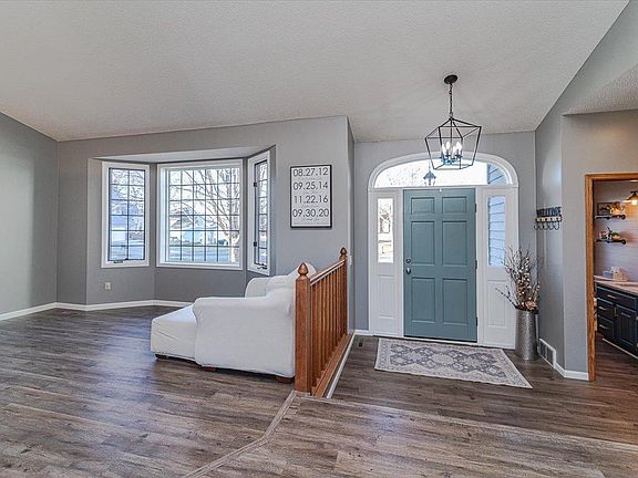 Welcome to 14765 Cherry Court NE. This remarkable modified two story is located in a great neighborhood close to schools and shopping. You will be greeted by soaring vaulted ceilings and lovely open floor plan. The main floor features a guest bath and laundry room, Step up to a formal living room, informal dining room and entertaining kitchen with breakfast bar. This is all open to a comfortable family room with gas fireplace the perfect place to relax or play. This level also has a 4th Bedroom currently used as that very important home office. The upper level features a primary en suite w/private bath and walk in closet. Two additional bedrooms and guest bath. The lower level is finished and is great space for a game room, tv room or play space. Walk out from the dining area to your large deck overlooking a fenced in back yard with storage shed and swing set. Freshly painted in 2019. Many updates and delightful decor make this home easy to love. Welcome to your new home!