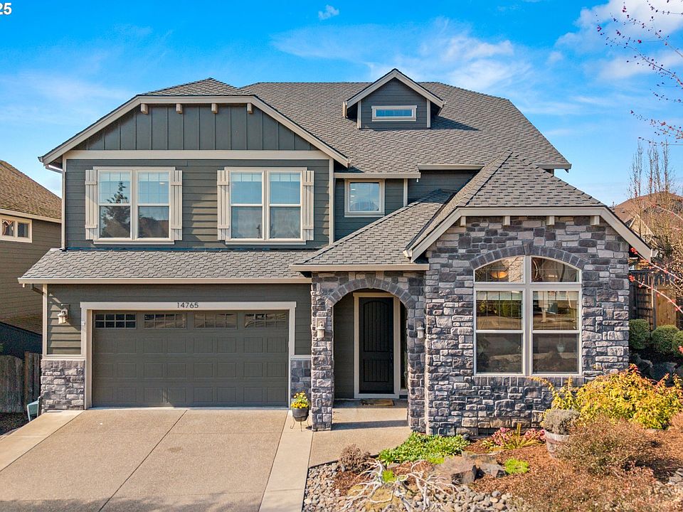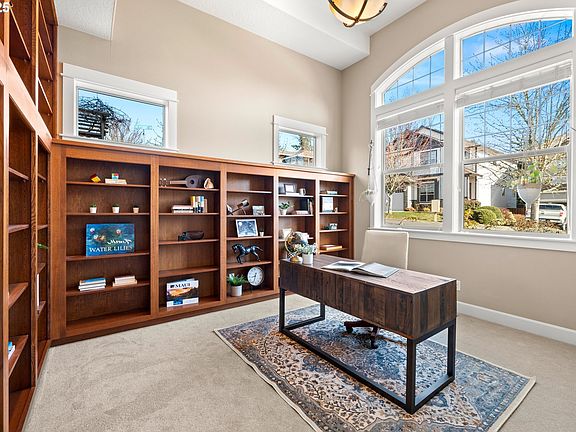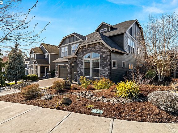French Prairie Vineyards is a stunning neighborhood on Bull Mountain, featuring high-quality homes w/elegant designs. Located on a corner lot in this quiet neighborhood, this beautiful residence showcases a striking stone façade w/an arched entryway, setting the tone for its refined interior. Inside, 10-foot ceilings create an open and airy atmosphere, complemented by spacious rooms throughout. The main floor is designed for both comfort & entertaining, offering a formal dining room, a generous great room w/built-ins, a gas fireplace and floor-to-ceiling windows, and a large casual dining area. The home office is a showstopper, featuring custom-built shelving—perfect for a sophisticated workspace or private library. The kitchen has been thoughtfully upgraded, featuring a large, curved-front island w/ added cabinets, granite countertops, instant hot water tap, and oak-wrapped columns. High-end appliances including Wolf gas stove top & oven with vent hood + 2nd electric oven, KitchenAid dishwasher & refrigerator. A 2017 renovation enhanced the kitchen’s seamless connection to the inviting living areas, blending functionality with style. Upstairs, four bedrooms provide ample space, including the oversized primary suite. The newly remodeled primary bath features a freestanding tub and a fully tiled shower, offering a spa-like retreat. The back yard is perfect for intimate gatherings, featuring covered outdoor living space w/tongue and groove ceiling & stone outdoor gas fireplace. Built with quality in mind, this home offers numerous upgrades, including new carpeting, recently refinished hardwood floors, a newly installed HVAC system with a heat pump & dual-zone climate control, new water heater, & a 50-year presidential-style composite roof. Plumbed for central vac & built-in speakers. Conveniently located near 99W & Bull Mountain Rd, this home offers easy access to schools, parks, shopping, & dining. A rare find, it's move-in ready & waiting for you to make it yours!