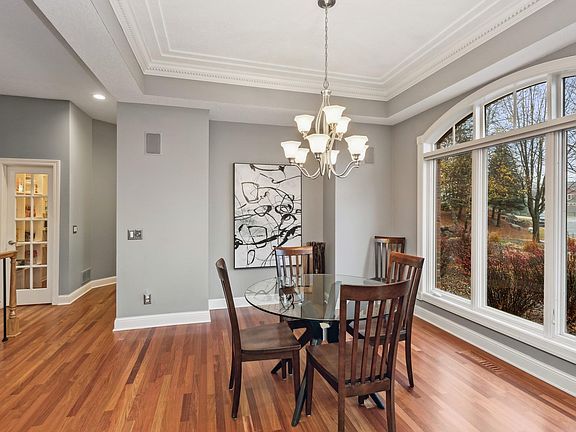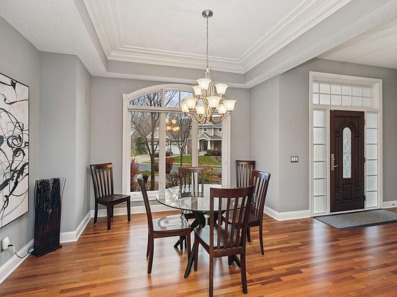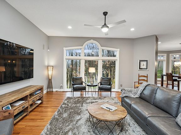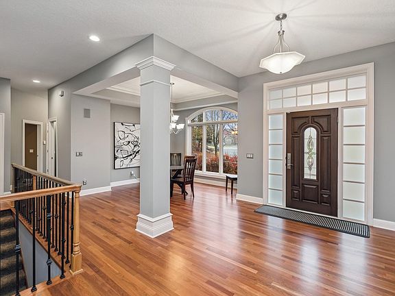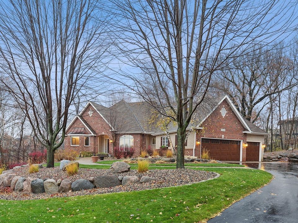 Amazing walkout Rambler on almost an acre, private wooded lot in Prior Lake Schools. As you walk into this fabulous open floor plan, the newly refinished Brazilian cherry floors will greet you and the enameled crown molding ceilings add just the extra elegant touch. You will look through the home and find a floor to ceiling arched window that overlooks the private backyard. The great room is oversized and is flooded with sunshine. The gourmet kitchen is a chefs dream come true with two full sized ovens, a center island as well as a breakfast bar. The hearth room is amazing with its gas fireplace and a wall of windows, you will also find a walk in pantry. Walk-out to your private paver patio and fire pit. The amazing master bedroom offers His & Her walk in custom closets, walk in glass rain shower and free standing tub. Lower family room with fireplace and wet bar walks out to another private patio. Three additional big bedrooms and a office found.