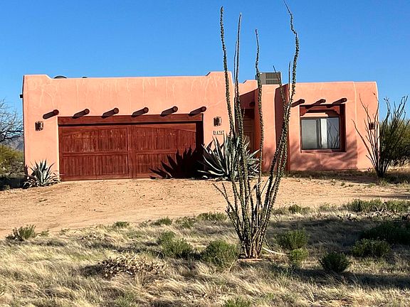 This beautiful semi-custom home sits on approximately 2 acres of lush untouched desert in the established community of Diamond Bell Ranch. Located only minutes from Tucson and you have all the walking and hiking trails you can dream of just outside your front door! The acreage allows for you to make your dreams of land ownership a reality! Bring your horses, toys or fur babies and live the dream! The home boasts Alder-wood cabinets with inlays of Saguaro ribs that brings nature into your home. Home has 3 large bedrooms. The owners suite is extra large with bay windows for a sitting area. Room also includes a sliding glass door to the patio to enjoy that first hot cup of coffee while watching the sunrise the birds, deer, javelinas and other wildlife.SEE SUPPLEMENT!! The third bedroom features a Murphy Bed that allows for the room to double as an office, crafting, sewing or an art studio. The home features a large kitchen with bar seating and dining area adjacent to the patio for grilling. Enjoy a nice warm fire in the Bee Hive wood fire place during the cool winter months. The third bedroom features a Murphy Bed that allows for the room to double as an office, crafting, sewing or an art studio. Your views from the front of the home are the beautiful Baboquivari Mountains are where you will enjoy watching the breath taking Arizona sunsets. The Baboquivari range is where the famous Kitt Peak Observatory is situated. This home will be able to be financed FHA, USDA, VA, and Conventional or Cash. Seller is offering buyer credit at closing for new paint or buyer concessions. This home is stunning has so much to offer!