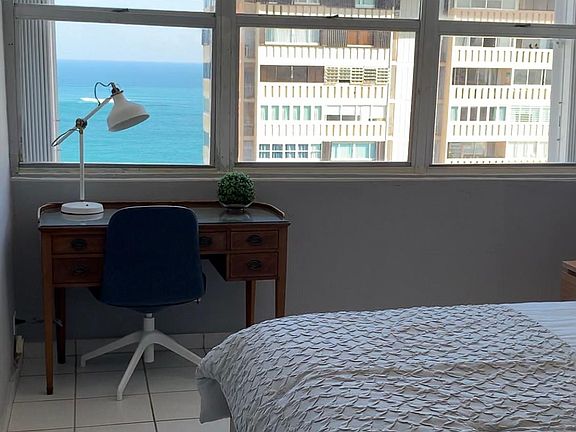 Enthralling view of the Atlantic Ocean from the 21st floor in Torre del Mar building. Spacious great room to relax and enjoy this fantastic property. Galley style kitchen, roomy master bedroom with fascinating views with walking closet and updated bathroom. One covered parking. The building offers 24/7 guard, pool, half basketball court, small gym, back up generator for communal areas. Communal laundry (every other floor in the building) No pets, no smoking, excellent credit report needed, income verification, rental application, background check, id.
