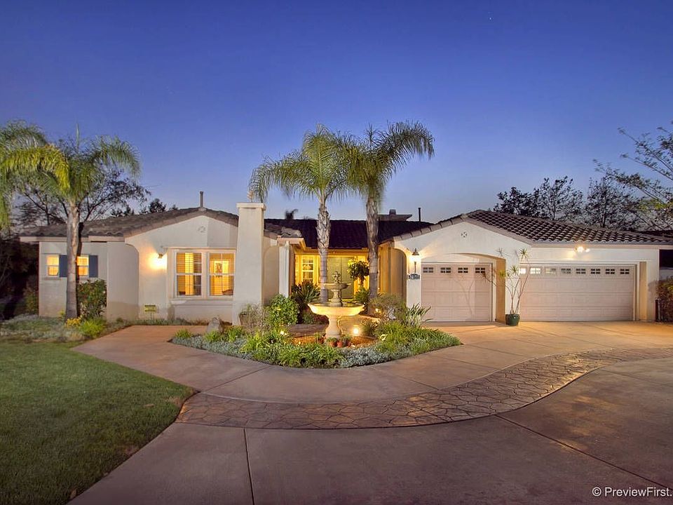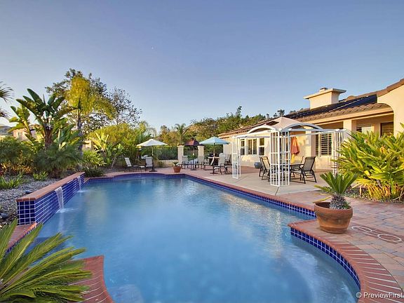 This is a stunning single level home in the highly desired gated community of Singing Hills. This home features 4+ beds 3.5 baths plantation shutters fully owned solar electric system dual A/C units & great mountain views! The kitchen has beautiful white cabinets travertine countertops & stainless steel appliances. This astonishing home has a gorgeous fully fenced yard with a pool waterfall brick patio & beautiful landscaping including palm and fruit trees. This lot is completely flat & usable.