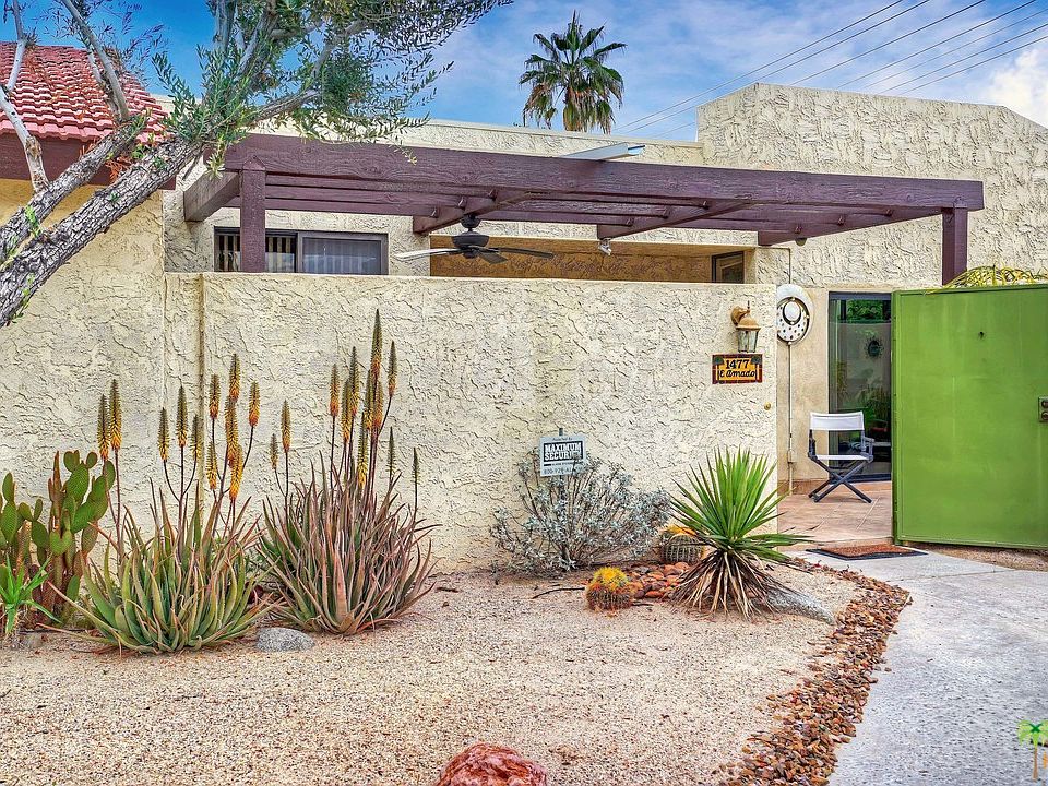 Wow! Just Move In. An airy and open floor plan, this large two bedroom three bath single level condo is conveniently located in the heart of Palm Springs at Palm Regency. Offered turnkey completely furnished with flat screen TV's, kitchen complete with dishes and cookware and much more! This upgraded condo is ideal as a full-time residence, vacation home or a fantastic rental income opportunity. Enjoy scenic mountain views from the outdoor living space. This end unit condo has a private wrap around patio. The open floor plan with high ceilings has a fireplace and is perfect for entertaining. This condo also has two master suites, one of which has a large walk-in closet and desk area. Other features include in-house laundry and an attached two car garage with lots of storage. Palm Regency is a highly sought after complex that is close to downtown Palm Springs. In addition, the complex has two pools with spas, tennis courts and a clubhouse. Condo and location is in high demand.