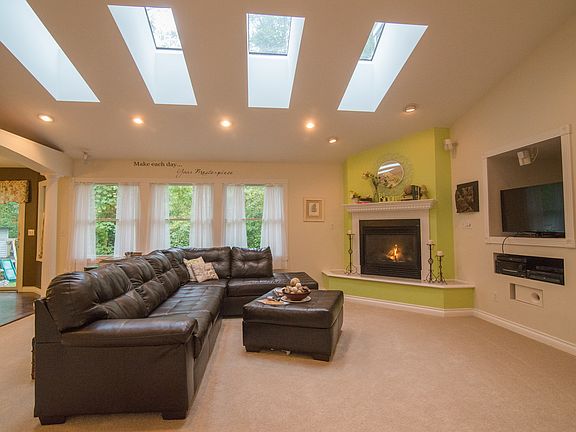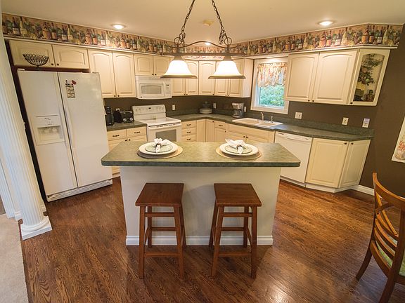 This three bedroom ranch is nestled on almost two acres. This private setting feels like an up North home but close to conveniences. This home was originally built as the builders private residence. The Master Suite features a trayed ceiling & walk-in closet. Additional amenities included a partially finished basement, city water, fireplace, wood flooring in kitchen, first floor laundry & 2.5 baths. The open floor plan includes great views & lots of natural light through the skylights.