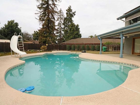 Reduced! Priced BELOW recent appraisal. OWNED Solar System on this One Owner, Custom Built Home with a large Sparkling POOL! An Impeccably Built and Maintained Home Featuring Living Room with Fireplace & Built-in Bookcase, Family Room w/Vaulted Wood Beam Ceiling and Separate Formal Dining room. 4 Year old A/C! Roomy Kitchen with Granite Counters, Newer Appliances, Breakfast Bar, Plenty of Cabinets, Counter Space & Beautiful View of Backyard. Master Suite has direct access to back Patio, Large Walk-in Closet, His/Hers Sinks and additional Vanity Area. Inside laundry w/Built-in Sink, Ironing Board & Laundry Chute from Upstairs Bedrooms. Garage has Extra Cabinets & Workbench area! Huge Backyard a offers an Enormous 14x40 Covered Patio w/4 Ceiling Fans, Large Pool w/Slide, Several Fruit Trees & Separate Fenced Garden area w/Shed! Located on a Spacious Over 1/4 Acre Lot! Built with 2x6 Construction and QUALITY you don't see everyday! Patio roof replaced 3/19