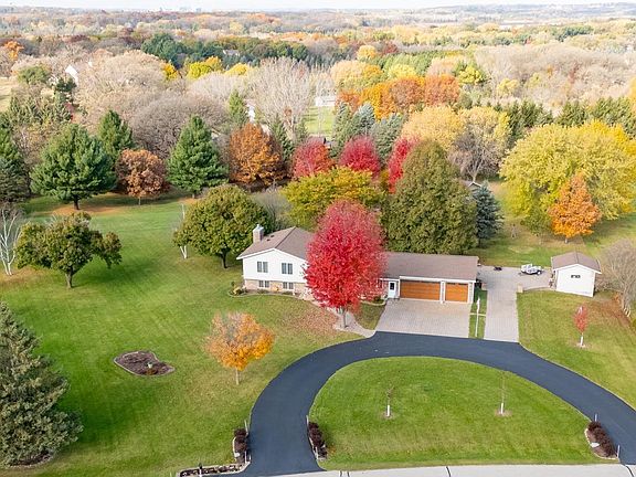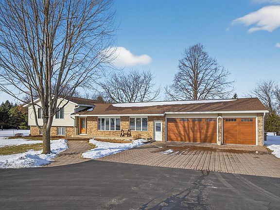 Set on just under three acres and surrounded by mature trees, this beautiful property offers a country feel while remaining conveniently close to town. The expansive lot provides space, privacy, and a peaceful setting with room to enjoy every season. The main level welcomes you with a bright and functional layout designed for everyday living and entertaining. The kitchen features abundant cabinet space, stainless steel appliances, quartz countertops, and under cabinet lighting, along with easy access to the deck and patio areas. A main floor laundry room adds everyday convenience. Living and dining spaces are warm and cozy and filled with natural light. All three bedrooms are located on the upper level, including a spacious primary suite with an updated private bath and a large walk-in closet. The lower level provides exceptional flexibility with multiple finished spaces. A large family room with a beautiful fireplace creates a cozy gathering area and includes a walkout to the patio. Additional rooms offer a variety of uses and may serve as a den, office, hobby space, recreation area, workout room, or workshop, providing flexibility to customize as needed. There is also a partially finished three quarter bath with plumbing in place for a shower. Outdoor living is equally impressive with a spacious double tiered deck, a large patio area, and plenty of green space to enjoy the surrounding trees and open views. A convenient wide, curved asphalt driveway with a paver apron at the garage extends to the shed and wraps around to the back of the property, offering excellent access and parking. The garage also has a high quality concrete floor coating along with a screened pull down door on the double garage door. The storage shed and an additional detached garage provide extra room for equipment, storage, or workspace. This property offers space to spread out, both inside and out, in a setting that balances privacy, functionality, and convenience.