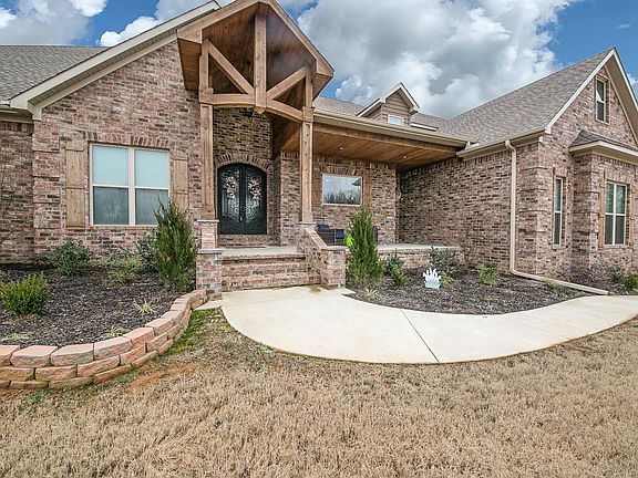 This stunning custom home, nestled on over six acres, offers an exquisite blend of luxury and comfort with all the modern upgrades you desire. The main house, an all-brick masterpiece, features four bedrooms, three and a half baths, and captivating beam work throughout. Enjoy the elegance of luxury vinyl plank flooring and a living room adorned with a beautiful tile fireplace. The kitchen is a chef's dream with a double wall oven and a massive pantry, while the bar area beckons for entertaining. The spacious master bedroom includes an adjoining room perfect for a private retreat or home office. Step outside to relax by the inviting in-ground pool, complete with a pool house that boasts a fully equipped kitchen, a bedroom, and one and a half baths—ideal for guests or as a serene getaway. This home truly embodies the perfect balance of sophistication and functionality.