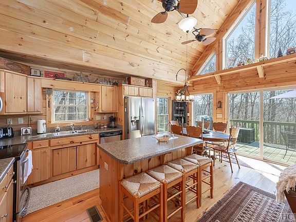 For those in search of privacy and seclusion, this property is a true gem. Take a tranquil drive along a country road, passing picturesque horse pastures and charming Christmas tree farms, until you arrive at a private gated entrance. Keep an eye out for deer or wild turkey, often spotted roaming the expansive grounds. Nestled on 5.34 acres, this estate offers a unique feature: it backs up to 246 acres of conservation easement property, ensuring privacy and a connection to nature. With an emphasis on privacy, the property is secured by a gate, providing peace of mind. It's the perfect blend of comfort and tranquility, ready to welcome you to your own private sanctuary. This fully turn-key, three-bedroom, three-bathroom log cabin offers the ultimate retreat experience at over 3,800 feet elevation. The second floor hosts the main living quarters, featuring a spacious living room with a cozy fireplace, a well-appointed kitchen/dining area, and a luxurious primary bedroom with an accompanying primary bathroom featuring a jetted tub. Ascend to the third floor to find a charming guest bedroom complete with an iron antique queen-size bed, twin bunks, and a full bath. On the first floor, amenities abound, including a garage, laundry room, full bathroom, and a spacious third bedroom. With approval from the Jackson County Health Department for five bedrooms, there's potential for future expansion. The home also has a whole-house sediment filter and UV light system. Nicely furnished with a mix of antique furniture, custom-made log furniture, and plush leather recliners in the living room, this home is sold with every detail considered, right down to linens to kitchenware. The sale includes a Polaris four-wheeler, a spacious John Deere side-by-side with four seats, a portable RS5500 generator, bush hog attachment, a chainsaw, a leaf blower, a weedeater, and much more. An RV spot includes water and electricity hook-ups near the old-timey outhouse with a working exterior sink.