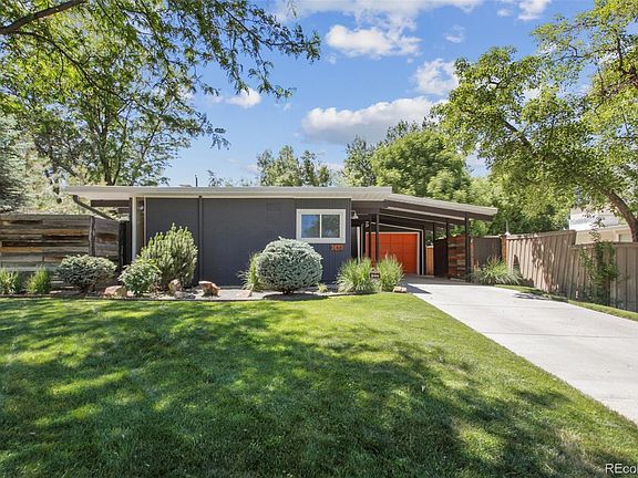 Wow! Amazing new price on this Joseph Eichler inspired Mid-Century Modern delight in Denver's Krisana Park neighborhood. Pride of Ownership shines throughout with many updates such as a complete re-pipe of the house, freshly updated bathrooms with Bedrosians tile selections, new HVAC system in 2021, new water heater in 2023, newly finished hardwood flooring a fresh paint throughout. Grand floor to ceiling windows blend an indoor/outdoor living experience with convenient side yard patio complete with TimberTech decking and mature evergreen trees. A spacious private backyard is lush with trees, raised planter bed, and access to double-sided garage door to meet the needs of storage and entertainment. Rare oversized attached garage and carport with trash enclosure to keep curb appeal on the forefront. A self-draining sprinkler system is a breeze, the beautiful Honey Locust in the front has been recently pruned and weekly lawn service is in place at the owner's option. Well located on the interior of the Krisana Park neighborhood with meandering streets, quick access to the Cherry Creek Trail system, amenities along Colorado Blvd. are only a skip away and commutes to Downtown Denver and the Tech Center are a snap. The following is a statement in the original sale brochure from builder H.B Wolff “ Some of the Contemporary characteristics expressed in The 3-D Home are: openness of design, exposed beam ceilings, interior wood paneling, and orientation of the house to take advantage of the sun and weather. As you would expect, in a house planned to permit the maximum enjoyment of outdoor living, there are large window walls and a sliding glass door off the living room directly on to the lanai. Window overhangs cut down sky-glare while admitting low winter sun." Come and experience this iconic living style today!