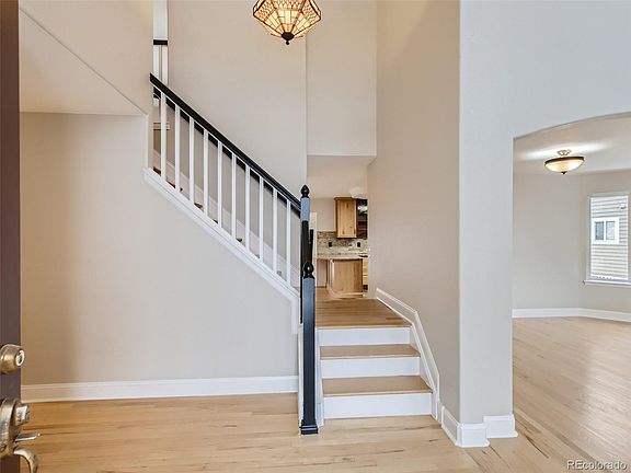 Great location, just seconds from Rock Park, I-25, downtown Castle Rock, retail, restaurants, and more! Beautiful two story home with a finished basement. The main level features soaring ceilings, hardwood floors, and a huge gourmet kitchen. The kitchen is complete with granite countertops, stainless steel appliances, tons of cabinet space including a cabinet pantry, and a sunny breakfast nook for enjoying everyday meals. The family room features two story ceilings, a cozy fireplace, and built-in shelving! The upper level features all the bedrooms including the primary suite! The basement is finished and offers additional living space including two flex rooms, an office, and another full bathroom. The exterior of the home is a dream with a huge covered deck that is pre-wired for a hot tub and a gorgeous green backyard with plenty of shade to cool off during the summer! Recent upgrades include: new roof in 2019, remodeled kitchen in 2017, and fresh interior paint in 2022. Welcome home! Click the Virtual Tour link to view the 3D walkthrough