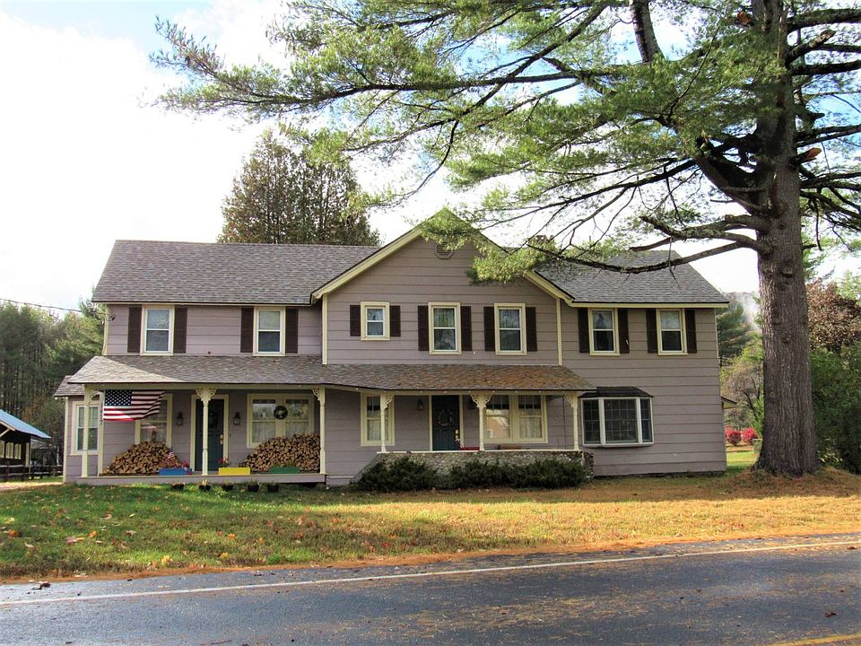 This 1900's farmhouse is a real gem located on the Adirondack trail along Rte 30 in the town of Wells NY.The home is with-in 200 feet walk to the public access Lake Algonquin and the Wells town beach. The home was built in the 1900's and completely renovated in the early 1990,s formerly known as "Abner Greenfield bed and breakfast" after renovations.The home is in beautiful condition and well kept.The main living space is open and spacious with hardwood floors in the huge dining and eat-in kitchen area.The living-room has a stone fireplace that leads to a small bar area.There is a covered porch across the front of the living space area that takes in the lake and mountains views. There is a back office/den area,open deck, master bedroom,full bath,and laundry on the main floor. There are two grand stair cases to either end of the upstairs and a private staircase to one bedroom up from the kitchen. One end has two bedrooms(one with its own stairs to the kitchen) and a full bath with a claw foot tub and separate shower.The other stairs lead to two bedrooms and two full baths.There is a full basement, updated septic,oil heat, new roof ,and town water. Included is a huge barn for storage. The property is located in the hamlet with many possibilities for a business or family retreat. The is a a MUST SEE!!!