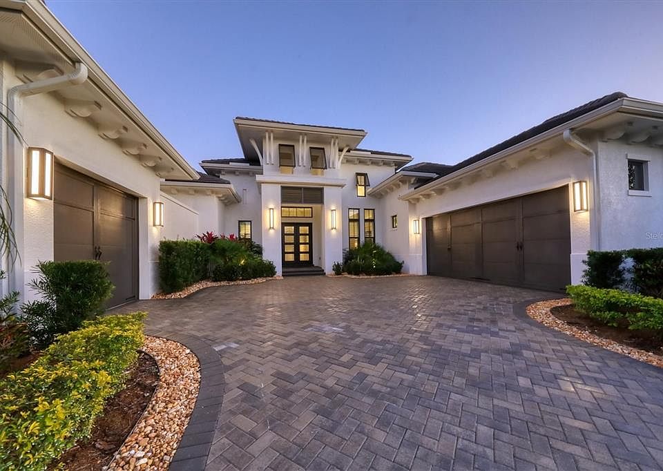 Live luxurious in this 2019-built Arthur Rutenberg Milan former model home in the Lake Club. This 4-bedroom, 4-full-bathroom, 1-half-bathroom exquisite home boasts a functional floor plan including a guest casita, remarkable finishes, expansive rooms, and a fantastic outdoor space. The impressive kitchen features a breakfast nook with 9 ½ foot pocketing sliders, grey and white cabinetry, a large island with counter height seating, quartz countertops, a walk-in pantry with pull-out shelving, Thermador stainless steel appliances, including a gas range, dishwasher, and a refrigerator, and a beautiful glass wine display with lights and plenty of space for a complete wine collection. The kitchen opens to the great room with a wall of 9 ½ foot pocketing sliders that lead to the lanai, a shiplap accent wall, and a beautiful, vaulted ceiling with beams extending over the kitchen and dining areas. Engineered wood floors flow throughout the main living areas of the home. The office provides a private workspace and boasts a hidden door to quickly access the hallway that leads to one of the guest bedrooms, the laundry room, and the garage. The spacious owner’s suite features banks of large windows to bring in natural light and two walk-in closets with custom built-in cabinetry. The spa-like bath has an extra-long vanity cabinet with quartz countertops, dual sinks, a make-up area, a beautiful soaking tub, a private water closet, a large walk-in shower, tile floors, and a private courtyard accessed by stunning French doors. The opposite side of the residence boasts an additional guest bedroom with an en-suite bathroom and a spacious bonus room with access to the lanai. The fully equipped guest casita off the lanai and pool area is perfect for those who need extra space for family or guests. The large lanai is the ideal setting for outdoor entertainment with covered and uncovered seating areas, open-view screen panels, an outdoor summer kitchen, a heated saltwater pool with a spa, and an elegant fireplace perfect for enjoying an evening with friends all year round. This home also includes a functional laundry room, impact-rated windows and doors, generator and a three-car garage with abundant storage. The Lake Club is one of the premier communities of Lakewood Ranch. Residents can indulge in the grande clubhouse with resort-style pools, a restaurant, a state-of-the-art fitness center, tennis, pickleball, and basketball courts, a dog park, and even a playground for the little ones. Lakewood Ranch schools are A-rated. Just a short drive away is Lakewood Ranch Main Street, the new Waterside Place, shopping or dining at UTC, and easy access to I-75. Don't miss this incredible opportunity.