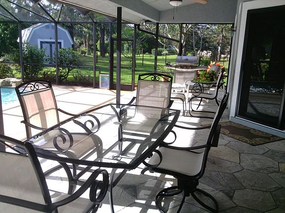 Beautifully maintained and landscaped 3 bedroom, 2 bath, pool home in rural setting, with lots of upgrades. Vaulted Ceilings, sunken living room, all tile floors, and huge covered screened back porch and pool with waterfall. Metal roof, stucco with very little exposed wood, solar hot water heater, French door stainless refrigerator, electric smooth top ranges with dual convection oven, and dual stainless sinks in kitchen. Split bedrooms, family room, breakfast nook, and updated bathrooms complete the flowing floor plan. All regular windows are PGT Winngard, and garage door is hurricane-proof double door. There is a separate generator hookup, and a gas generator comes with the house. There is an 8 zone irrigation system with a new Rainbird clock.
