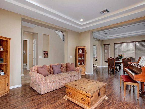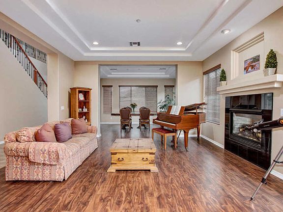 IGNORE DAYS ON MARKET, price current since 5/26. Seller wants sold! Spectacular contemporary home architecturally and aesthetically pleasing to the eye inside and out. High ceilings, stunning hardwood floor, custom interior palette, substantial amount of windows allowing natural light, cozy fireplace, and dramatic stairway to second level. Great room features plush carpet, custom built-in entertainment center, and access to patio. Formal dining room for large gatherings or Holiday get togethers. Gorgeous gourmet kitchen boasts plenty of raised panel wood cabinetry, granite counters, stainless steel appliances, center island, and breakfast bar. Quiet den/ office allowing plenty of privacy. Upgraded lighting and ceiling fans throughout.