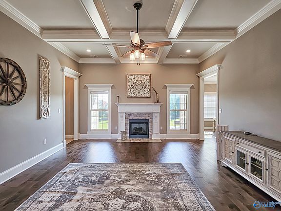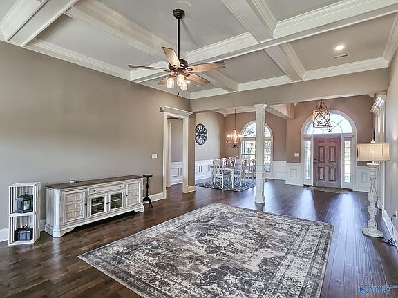 As you step inside this beautiful home you are greeted with a large foyer area that is open to the main living area which boasts 10 ft. ceilings, gorgeous hardwood floors and crown molding. The family room offers a coffered ceiling and fireplace. Luxury living all on one level with 4 bedrooms and 3 baths. The spacious isolated primary suite is a homeowner's dream. 3rd and 4th bedrooms share a Jack and Jill bathroom. Step outside into your own oasis. Covered porch for relaxing and an inground pool for those hot summer days. Don't miss out on this amazing home. Approximately 20 minutes from Redstone Arsenal and Research Park.