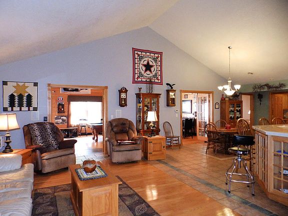 Stunning 2732 sq ft sprawling ranch on 8 acres with an oversized 2 car attached garage AND a 40 x 50 pole barn. Rural setting with economical natural gas in-floor heating in the house, garage, and part of pole building. Open floor plan, beautiful vaulted ceilings, and a recreation room with wet bar & not currently used In-ground pool, make this home perfect for entertaining. Spacious master bedroom and master bath with oversized 2-person shower and jetted tub. Convenient laundry / half bath combo, split ranch allows privacy to other 2 bedrooms & bath. In-ground pool ready to re-activate lies under the rec-room for buyers that would prefer an inside pool room. Pole building equipped with bathroom, car hoist, air compressor. Quality built, see details sheet for all the extras.