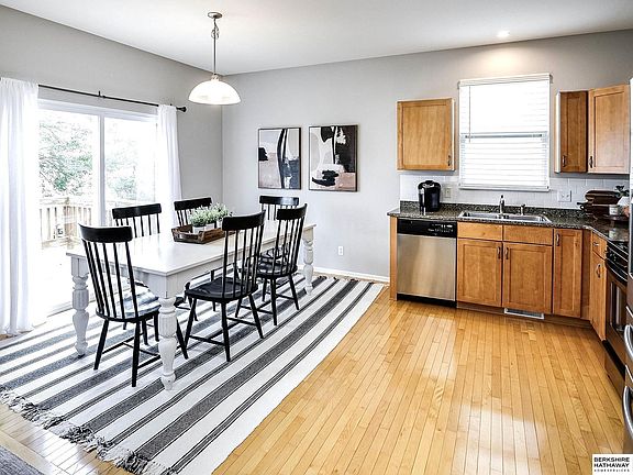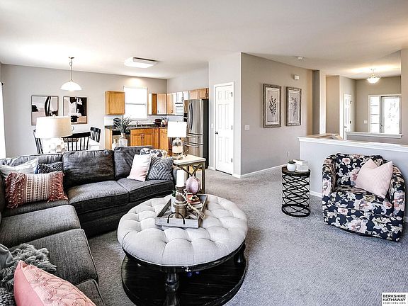 This home is a true delight. The open and spacious floor plan allows for easy entertaining. Fully repainted interior with updated carpet add to the clean and move in ready feel. Hardwood floors in the kitchen and dining space. Stainless steal appliances in the kitchen stay. The primary bedroom is large and privately located with an oversized walk-in closet and full bathroom with tub. Enjoy the second entertaining space downstairs with the fully finished walkout basement. Right now, it is all open but you could add a wall for a 4th bedroom and family room. The lower level also includes a 3/4 bathroom and a large storage space. Main floor laundry and underground sprinkler system. Roof brand new in July 2024! Get in just in time for football season! Contact Listing Agent for Kitchen Island option.