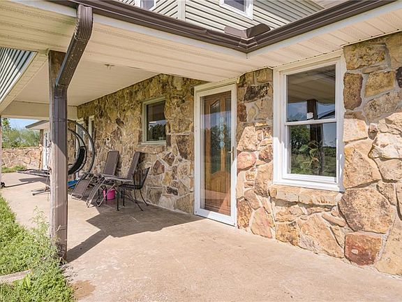 NEW HVAC to be installed the week of June 1! Sweeping views, privacy, and endless potential! This spacious and charming home sits on 39+/- lush acres of beautiful Kansas land. The land features two ponds, fencing and mature trees. The home features an open concept kitchen, dining and family room with tons of natural light. The deck off of the up-stairs landing will be a wonderful place for morning coffee or late night entertaining watching the stars. The home has a sturdy metal roof and the natural stone siding provides a warm rustic look, with durable vinyl siding on the upper story. Outbuildings include a three sided shed and a large garage with electricity and concrete floor which would make a terrific shop for your business or home projects.