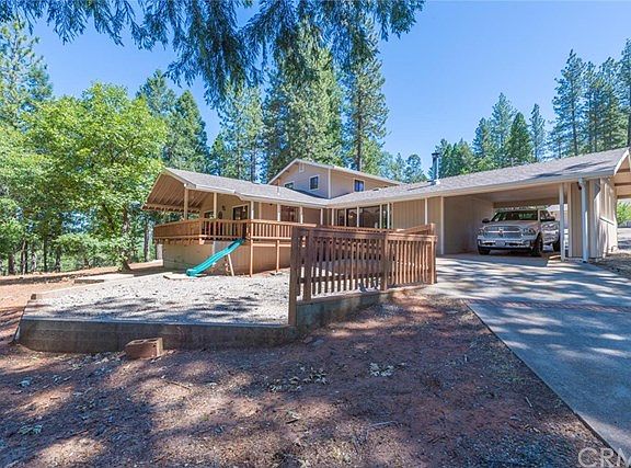 Nestled in the Evergreens of Magalia is this turnkey horse ranch. This remodeled house offers Newer Vancouver Birch Wood Laminate flooring extending through the living room, kitchen, office & hallway. The spacious living room offers a free standing wood stove resting on a ledger stone hearth, LED recessed lighting, slider to wraparound deck & big windows to enjoy private views. The newer kitchen offers Knotty Alder custom cabinets, granite slab counter tops, upgraded stainless steel appliances, LED recessed lighting & slider to the 10X28 vaulted beam covered deck w/ sunsets & canyon views! 2 Spacious Bedrooms on main floor, office & full bath. Upstairs leads to a 546 sq. ft. Master Suite! Master bath offers custom tiled walk in shower w/ upgraded glass door & quartz counter vanity. This amazing Horse property offers Wonderful Mountain & Butte Creek Canyon Views, Total Privacy, Chain linked Fenced 5 usable Acres, Custom Automatic Iron Gate Entrance, secondary roll gate access, MD Barn Master 3 Stall Horse Barn, R.V. septic hook up & 20X48 detached garage/shop! The horse facility offers three 12X12 stalls, auto drinkers per stall, electrical, 12X12 tack room, cement slab throughout, swing feed doors & sliding door entry, 8X12 hay room, Flex Fenced Pasture & location offers riding access to the local flumes, trails & Meadow Brook Ranch. Newer Central 2 zone HVAC system. Seller including Garco Metal Building System 40X60 Shop un-assembled but pad is ready for new owner to install