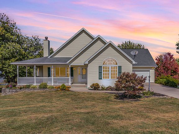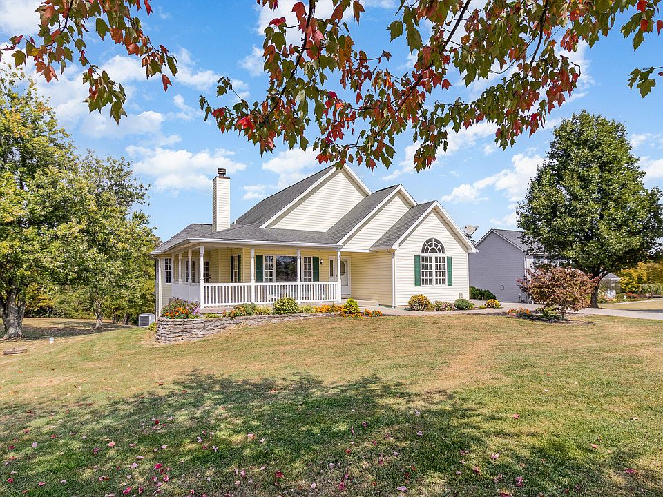 This picture perfect country charmer is sure to be snatched up real quick!! From the moment you pull into the driveway you feel right at home! A big wrap around porch, inviting living room with fireplace and vaulted ceiling, formal dining room with two sets of French doors leading to separate porches, southern kitchen with beautiful cabinetry and an island, primary suite features private bath with separate shower and jet tub, first floor laundry, finished lower level with 1/2 bath and walkout, screened in back porch, lower level patio, all settled on a beautiful 1.38 acre lot with a small pond at the rear! What more could you possibly ask for!?