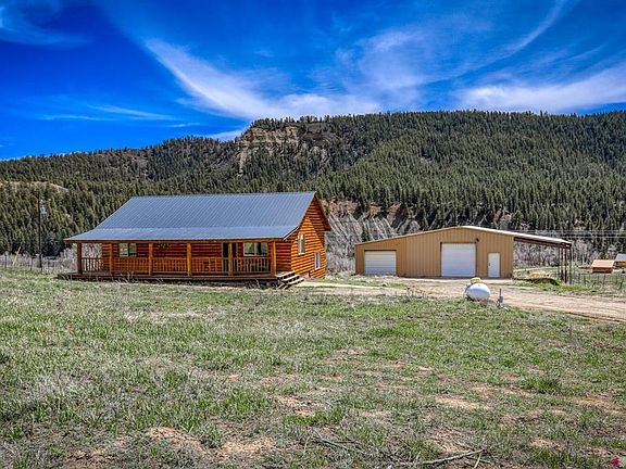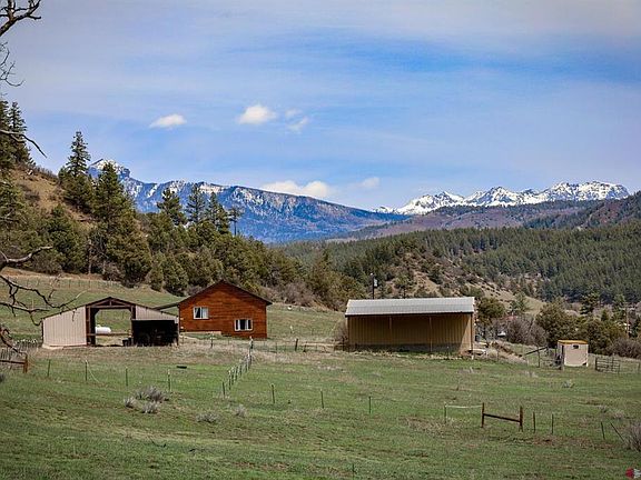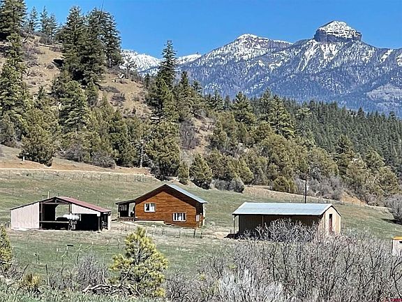 CUTE AND COZY MOUNTAIN CABIN LOCATED ONLY 15 MIN. FROM HISTORICAL DOWNTOWN PAGOSA SPRINGS, CO.. NEW FLOORING, NEWER APPLIANCES, PARTIAL NEW PAINT, ANY MANY MORE REPAIRS HAVE BEEN MADE. This mini hobby farm could be just what your looking for in SOUTHWEST COLORADO, this 12.49 acres is zoned residential ag and is fenced and crossed fenced for animals of your choice, round pen, animal barn with electric and water, chicken coop, also includes a 2400 sq. ft. brightly lit workshop with 100 amp breaker box w/ 110 & 220 service, insulated, 2000 BTU radiant propane heat, center concrete drain, concrete floor and 2 large roll up bay doors. PERFECT FOR A SHOP!! 2400 sq. ft. heated garage is currently set up with top of the line grow lights, fans, insulated rooms for each growing stage and all growing equipment on property can be included in the sale price and is a 25K value or all equipment can be removed before closing. RIDE YOUR HORSE TO THE NATIONAL FOREST WHICH THE ACCESS IS LOCATED DIRECTLY ACROSS THE STREET. Property has a old non permitted well that could be brought back to life and .75cfs water rights for 8 acres irrigation but the ditch has been dry for many years. Pre inspected and repairs have been made.