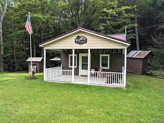 Situated along a year-round stream is this updated cabin with one bedroom and a full bathroom. Enjoy the peace and quiet from the newly installed, covered concrete patio. Step into the cabin to the kitchen/living room combination highlighted by the updated kitchen, tile floor, and beautiful woodwork. Existing natural gas feeds the fireplace insert, and a recently drilled well provides running water. The lot size is 0.5 acres.