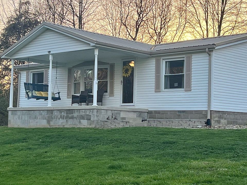 1478 Cox Rd., Wellston, OH 45692. Enjoy the peace and quiet that come with this beautiful country setting. A very well maintained home with covered front porch that includes a swing from which you can view the sunrise as well as a backyard firepit. Other features include metal roof, window replacements, deck, outside motion sensor lighting, and a fenced area behind the home. Inside you will find 3 bedrooms, 2 baths, a large family room, and a dining area. The kitchen has updated wood cabinets, countertops, and track lighting. There are new light fixtures throughout the home. This property offers a well but also the option of tying into county water. Leach bed 2019. Heat pump 2013. Frontier Internet. All electric home with Buckeye Rural Electric.