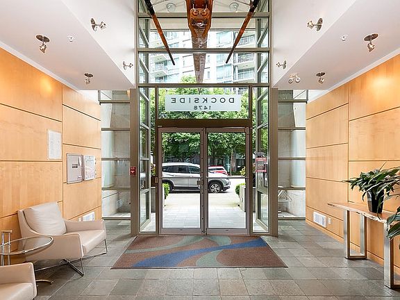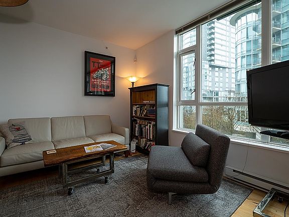 Efficient 510 sq ft LIVE/WORK studio at Dockside Coal Harbour offers amazing value in an unbeatable location. Live/work steps from the waterfront & seawall in this trouble-free, quiet, concrete building. Low strata fees ($247.48/mth). Engineered H/W floors, stone counters, S/S appliances, gas stove, insuite storage, large closet and a full bathroom (W/new counter & fixture), new clothes washer/dryer. Peek-a-boo views of the North Shore Mountains. Walk to everything: Restaurants, theatres, groceries etc. For investors: very rentable, low Strata fees. Rentals & Pets (1 dog or 1 cat) welcome. 1 assigned UG pkg space. All measurements approx - buyer to verify. residential use prop taxes approx $1750. 2021 taxes of approx $3500 were due to business use. Consult BC Assessment with inquiries.