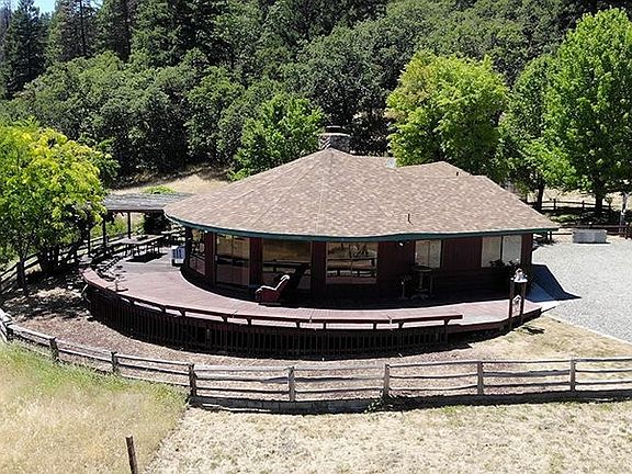 No matter what draws you to the mountains, this is a property that will make you want to stay and call Trinity County HOME! Incredible 106 acres of mostly gentle terrain, fenced for livestock with a beautiful barn, riding arena with lights and bleachers, and natural spring water meandering through parts of the property. Enjoy captivating views from the deck of the custom octagonal 2/2 home, and the 2/1 guest-home situated at the back of the property overlooking the sunny south-facing meadows. Being at the end of the road, and adjacent to National Forest means privacy galore and access to recreation. Deeded rights to 2 springs with 15k gallons of water storage, water is pretty abundant here! Property has been evaluated for cannabis cultivation and meets all criteria to be eligible, zoning is 40-acre minimums so two parcels over 50 acres each are a possibility; with potential to qualify for 1-acre of cultivation canopy (buyer to confirm with consultant). This property fits the bill for so many purposes - livestock ranch, mountain retreat, cannabis business.... Rare offering, don't delay in seeing this one!