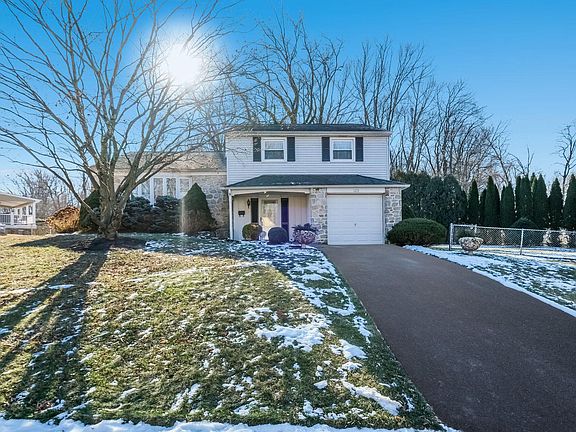 Welcome to this immaculate 3 BR, 2.5 BA stone-front split-level. A covered front porch with a leaded glass front door leads to a formal entry. Steps from entry lead to a formal Living room with a large Andersen bow casement window welcoming in the sunshine. Wall-to-wall carpet in the Living room continues into the formal Dining Room with a large twin window. Directly off the Dining room is the Eat-in Kitchen with a ceramic tile floor, newer cathedral-style maple cabinetry, gas range with built-in overhead microwave, built-in dishwasher, tiled backsplash & recessed lighting. Steps lead from the Kitchen to the Family room which can also be accessed through the Foyer. The Family room offers a beamed ceiling, ceiling fan, Berber carpet & a large double sliding glass door opening to a paver patio & fenced rear yard. There is a first-floor Powder room off the Foyer & stairs leading to the unfinished Basement with a Laundry area. From the Living room, stairs lead to the upper level that offers a hall bath with tub/shower combination & wet bed tile walls & floor plus a large single vanity. The Primary Bedroom offers 2 double closets, a ceiling fan & a full bath with a walk-in shower with a glass door & tile floor & shower walls. The home features wall-to-wall carpet over hand-laid, solid oak hardwood floors in the Living room, Dining room, stairs, hallway & upper level. The hw floors have never been exposed to foot traffic. Newer vinyl replacement windows throughout. Hurricane shutters. Gas Weil/Mclane baseboard heat & central air. Oversized 1-car Garage with access to the main level. This property is in absolutely meticulous condition inside and out!