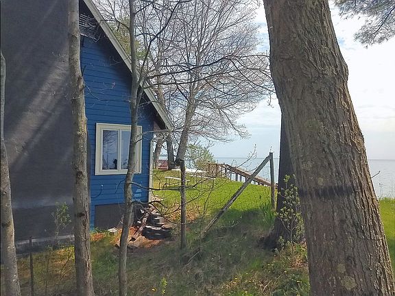 Lake front 1940 log cabin with addition/remodel done in 1970. Spectacular views of Lake Huron.