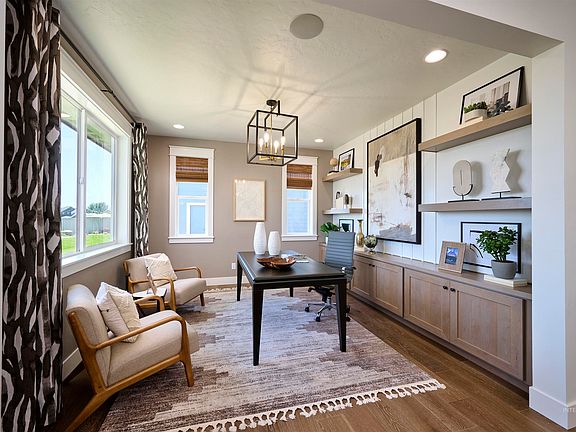 The beautiful, fully furnished Hensley model exudes elegance with it's modern architecture and luxury appointments. A soaring two-story foyer reveals a magnificent open-concept main living area, encompassing an expansive great room and dining room with adjacent flex room with built ins and a desirable outdoor patio. A large center island with accompanying breakfast bar complements the well-designed kitchen, offering ample counter and cabinet space as well as an oversized walk-in pantry. Highlighting the superb primary bedroom suite is an impressive walk-in closet and a luxurious primary bath with a dual-sink vanity, a luxe shower, and a large walk in closet. Sizable closets define the large secondary bedrooms that share a hall bath. A versatile first-floor bedroom with a private closet and shared hall bath can be found off the foyer, with additional highlights including easily accessible laundry off the everyday entry, mud room cabinets and built in fireplace with seating in the backyard. 4 car garage. BTVAI.