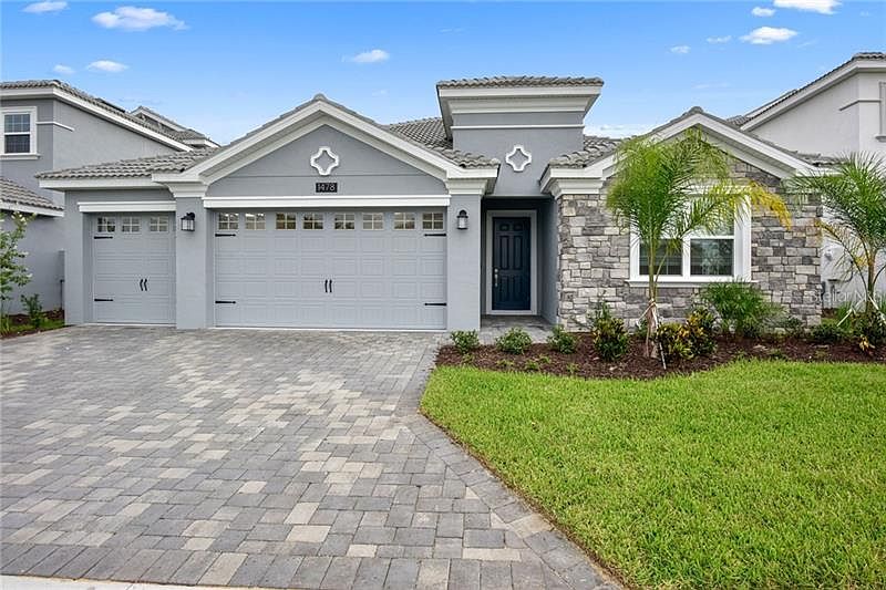 This exceptional one story home has 4 bedrooms, 3 bathrooms and a 3 car garage. The impressive kitchen comes with breakfast nook plus has a large island that overlooks a combined family, dining & living room. The master bedroom has a walk in shower and his and her sinks. We have a limited release of NEW homes that sit on well-maintained sites with golf and conservation views, perfect for relaxing with friends and loved ones. With âEURœEverythingâEUR(tm)s IncludedâEUR, luxury and value go hand in hand. New highly energy efficient homes feature 42âEUR maple cabinetry, quartz countertops in both kitchen and bathrooms, stainless steel appliances, state of the art security system faux-wood blinds, and expansive covered lanais to enjoy your gorgeous golf and conservation views and much more! -For limited time, take advantage of our lender based incentives! Enjoy the resort style pool, spa, tennis, basketball, golf, fitness center, on site concierge, and much more. CHAMPIONS GATE RESORT ORLANDO OASIS CLUB CLUBHOUSE AND WATER-PARK: Amenities will include: Lazy River, Water-slides, Swim-Up Bar, Water Falls, Beach Entry, Spa, Splash Pad, Grill, Bar, Fitness Area, Theatre, Games Room, Tiki Bar and Cabanas. Simply relax by the pool, watch your family have the time of their life. All of these amenities are INCLUDED in HOA.