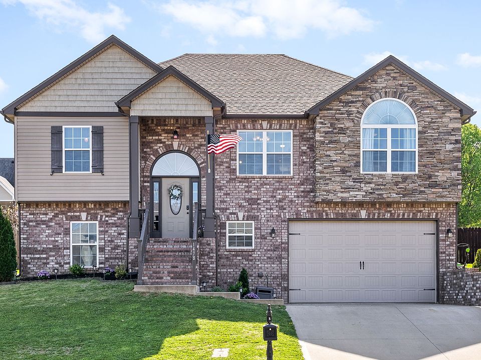Spacious home just minutes from Fort Campbell! As you step into the generously sized living area, flooded with natural light and featuring a cozy fireplace and lofty ceilings, you'll feel right at home. The seamless flow from the living room to the kitchen creates an ideal entertaining space, complete with stainless steel appliances, granite countertops, and a double oven, with easy access to the formal dining area. Tucked away from the other bedrooms, the primary suite boasts a spacious room, vaulted ceilings, and a dream-worthy bathroom. Adjacent to the primary suite, you'll find two additional bedrooms with ample closet space and a shared bathroom. Downstairs, a large bonus room, utility area, and access to the 2-car garage await. Additionally, downstairs offers two more bedrooms, a full bath, and a home office, perfect for creating your own in-home gym. Outside, a covered deck and privacy fence provide a secluded space for outdoor entertaining.